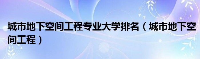 今天菲菲来为大家解答以上的问题。城市地下空间工程专业大学排名,城市地下空间工程相信很多小伙伴还不知道,现在让我们一起来看看吧!
