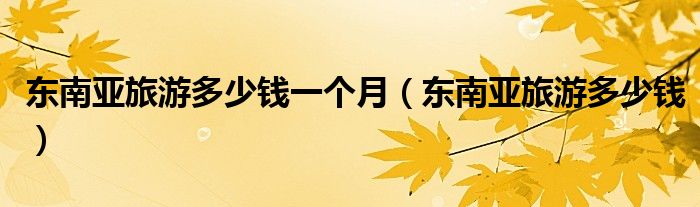东南亚旅游多少钱一个月(东南亚旅游多少钱),求大佬施舍一个解决方案,感激不尽!