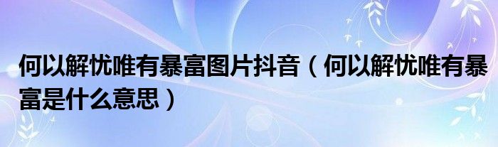 今天菲菲来为大家解答以上的问题。何以解忧唯有暴富图片抖音,何以解忧唯有暴富是什么意思相信很多小伙伴还不知道,现在让我们一起来看看吧!