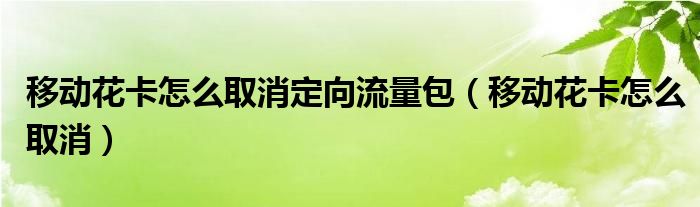 今天菲菲来为大家解答以上的问题。移动花卡怎么取消定向流量包,移动花卡怎么取消相信很多小伙伴还不知道,现在让我们一起来看看吧!