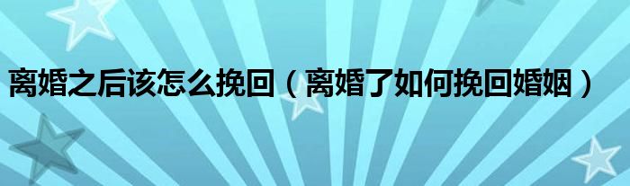 今天菲菲来为大家解答以上的问题。离婚之后该怎么挽回,离婚了如何挽回婚姻相信很多小伙伴还不知道,现在让我们一起来看看吧!