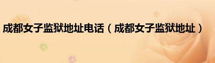 成都女子监狱地址电话(成都女子监狱地址)!时间紧迫,求快速解答!