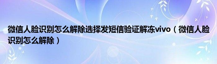 微信人脸识别怎么解除选择发短信验证解冻vivo(微信人脸识别怎么解除),快急哭了,求给个正确方向!