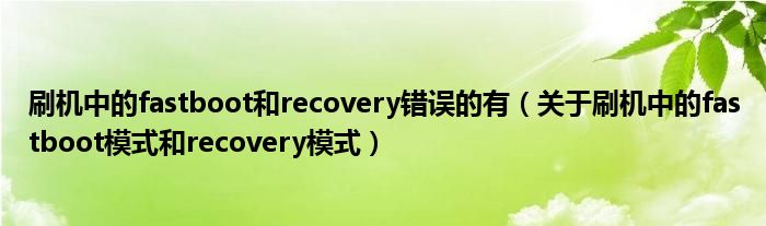 今天菲菲来为大家解答以上的问题。刷机中的fastboot和recovery错误的有,关于刷机中的fastboot模式和recovery模式相信很多小伙伴还不知道,现在让我们一起来看看吧!