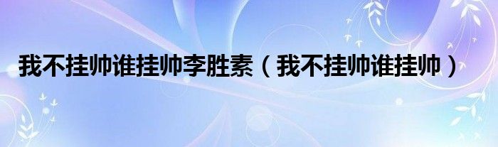 我不挂帅谁挂帅李胜素(我不挂帅谁挂帅),求快速回复,真的等不了了!