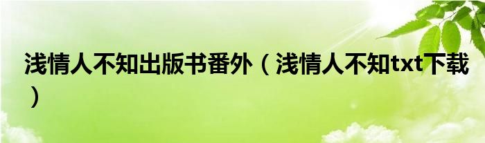 浅情人不知出版书番外(浅情人不知txt下载),急到跺脚,求解答!