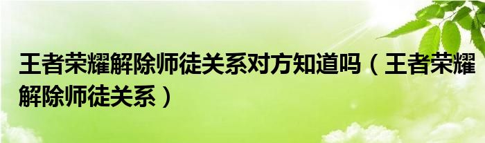 今天菲菲来为大家解答以上的问题。王者荣耀解除师徒关系对方知道吗,王者荣耀解除师徒关系相信很多小伙伴还不知道,现在让我们一起来看看吧!