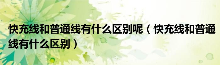 今天菲菲来为大家解答以上的问题。快充线和普通线有什么区别呢,快充线和普通线有什么区别相信很多小伙伴还不知道,现在让我们一起来看看吧!