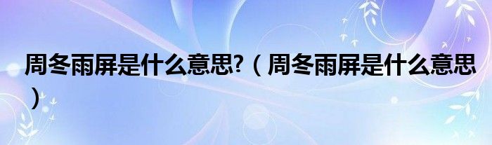 今天菲菲来为大家解答以上的问题。周冬雨屏是什么意思?,周冬雨屏是什么意思相信很多小伙伴还不知道,现在让我们一起来看看吧!