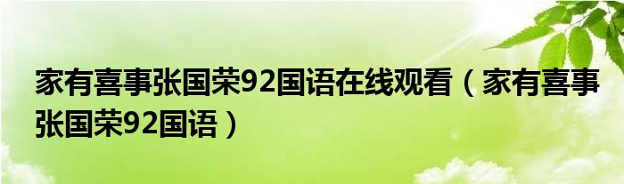 今天菲菲来为大家解答以上的问题。家有喜事张国荣92国语在线观看,家有喜事张国荣92国语相信很多小伙伴还不知道,现在让我们一起来看看吧!