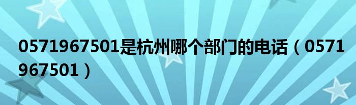 今天菲菲来为大家解答以上的问题。0571967501是杭州哪个部门的电话,0571967501相信很多小伙伴还不知道,现在让我们一起来看看吧!