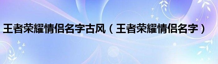今天菲菲来为大家解答以上的问题。王者荣耀情侣名字古风,王者荣耀情侣名字相信很多小伙伴还不知道,现在让我们一起来看看吧!