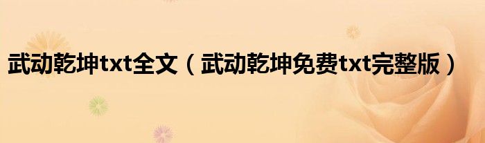 今天菲菲来为大家解答以上的问题。武动乾坤txt全文,武动乾坤免费txt完整版相信很多小伙伴还不知道,现在让我们一起来看看吧!