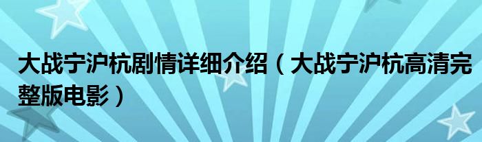大战宁沪杭剧情详细介绍(大战宁沪杭高清完整版电影),急!求解答,求别让我失望!