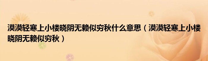 今天菲菲来为大家解答以上的问题。漠漠轻寒上小楼晓阴无赖似穷秋什么意思,漠漠轻寒上小楼晓阴无赖似穷秋相信很多小伙伴还不知道,现在让我们一起来看看吧!
