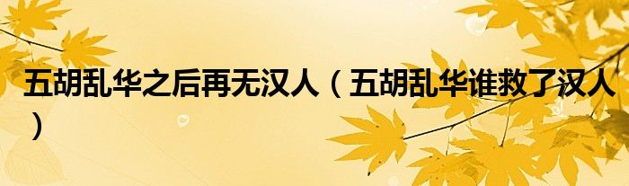 今天菲菲来为大家解答以上的问题。五胡乱华之后再无汉人,五胡乱华谁救了汉人相信很多小伙伴还不知道,现在让我们一起来看看吧!