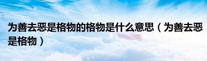 今天菲菲来为大家解答以上的问题。为善去恶是格物的格物是什么意思,为善去恶是格物相信很多小伙伴还不知道,现在让我们一起来看看吧!