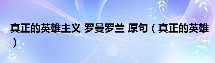 今天菲菲来为大家解答以上的问题。真正的英雄主义 罗曼罗兰 原句,真正的英雄相信很多小伙伴还不知道,现在让我们一起来看看吧!