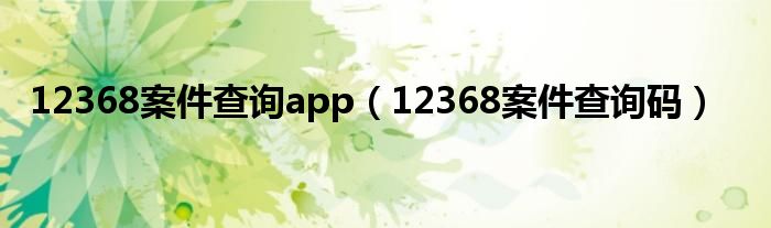 今天菲菲来为大家解答以上的问题。12368案件查询app,12368案件查询码相信很多小伙伴还不知道,现在让我们一起来看看吧!