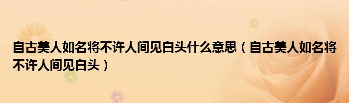 今天菲菲来为大家解答以上的问题。自古美人如名将不许人间见白头什么意思,自古美人如名将不许人间见白头相信很多小伙伴还不知道,现在让我们一起来看看吧!