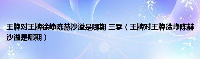 今天菲菲来为大家解答以上的问题。王牌对王牌徐峥陈赫沙溢是哪期 三季,王牌对王牌徐峥陈赫沙溢是哪期相信很多小伙伴还不知道,现在让我们一起来看看吧!