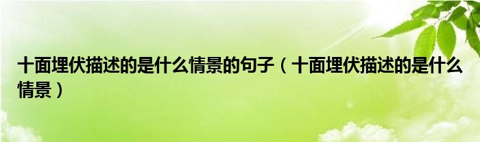 今天菲菲来为大家解答以上的问题。十面埋伏描述的是什么情景的句子,十面埋伏描述的是什么情景相信很多小伙伴还不知道,现在让我们一起来看看吧!