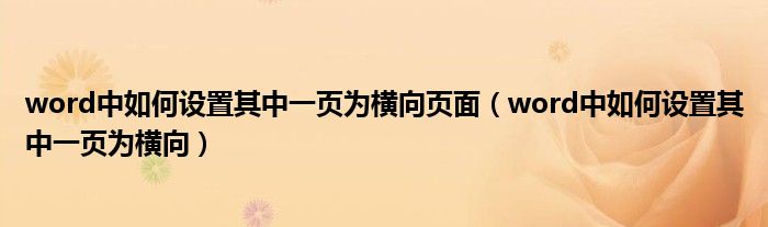 word中如何设置其中一页为横向页面(word中如何设置其中一页为横向),有没有大神路过?求指点迷津!