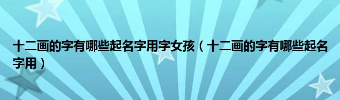 今天菲菲来为大家解答以上的问题。十二画的字有哪些起名字用字女孩,十二画的字有哪些起名字用相信很多小伙伴还不知道,现在让我们一起来看看吧!