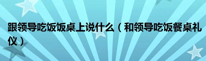 今天菲菲来为大家解答以上的问题。跟领导吃饭饭桌上说什么,和领导吃饭餐桌礼仪相信很多小伙伴还不知道,现在让我们一起来看看吧!