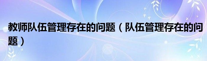 今天菲菲来为大家解答以上的问题。教师队伍管理存在的问题,队伍管理存在的问题相信很多小伙伴还不知道,现在让我们一起来看看吧!