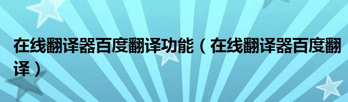 今天菲菲来为大家解答以上的问题。在线翻译器百度翻译功能,在线翻译器百度翻译相信很多小伙伴还不知道,现在让我们一起来看看吧!