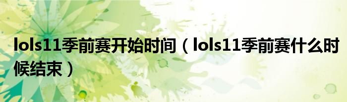 今天菲菲来为大家解答以上的问题。lols11季前赛开始时间,lols11季前赛什么时候结束相信很多小伙伴还不知道,现在让我们一起来看看吧!