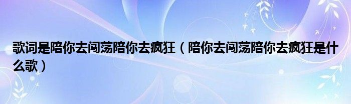 今天菲菲来为大家解答以上的问题。歌词是陪你去闯荡陪你去疯狂,陪你去闯荡陪你去疯狂是什么歌相信很多小伙伴还不知道,现在让我们一起来看看吧!