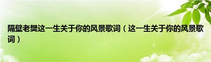 今天菲菲来为大家解答以上的问题。隔壁老樊这一生关于你的风景歌词,这一生关于你的风景歌词相信很多小伙伴还不知道,现在让我们一起来看看吧!