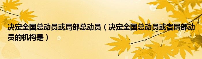 今天菲菲来为大家解答以上的问题。决定全国总动员或局部总动员,决定全国总动员或者局部动员的机构是相信很多小伙伴还不知道,现在让我们一起来看看吧!