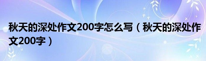 今天菲菲来为大家解答以上的问题。秋天的深处作文200字怎么写,秋天的深处作文200字相信很多小伙伴还不知道,现在让我们一起来看看吧!