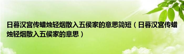 今天菲菲来为大家解答以上的问题。日暮汉宫传蜡烛轻烟散入五侯家的意思简短,日暮汉宫传蜡烛轻烟散入五侯家的意思相信很多小伙伴还不知道,现在让我们一起来看看吧!