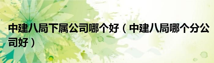 中建八局下属公司哪个好(中建八局哪个分公司好),在线求解答