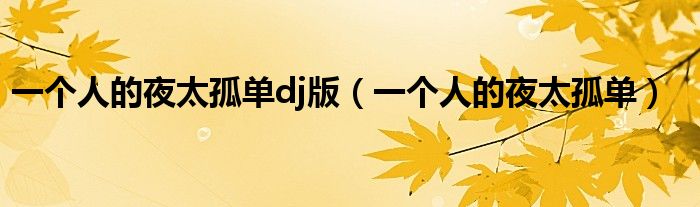 今天菲菲来为大家解答以上的问题。一个人的夜太孤单dj版,一个人的夜太孤单相信很多小伙伴还不知道,现在让我们一起来看看吧!