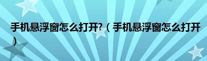 今天菲菲来为大家解答以上的问题。手机悬浮窗怎么打开?,手机悬浮窗怎么打开相信很多小伙伴还不知道,现在让我们一起来看看吧!