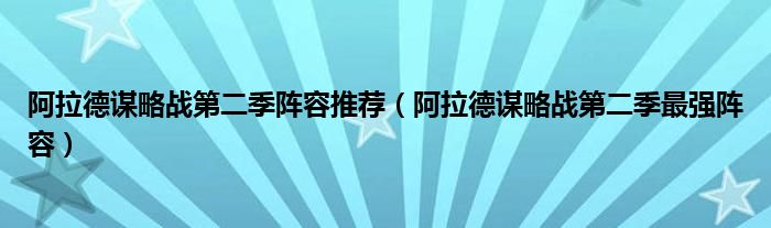 今天菲菲来为大家解答以上的问题。阿拉德谋略战第二季阵容推荐,阿拉德谋略战第二季最强阵容相信很多小伙伴还不知道,现在让我们一起来看看吧!