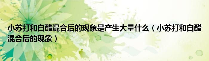 今天菲菲来为大家解答以上的问题。小苏打和白醋混合后的现象是产生大量什么,小苏打和白醋混合后的现象相信很多小伙伴还不知道,现在让我们一起来看看吧!