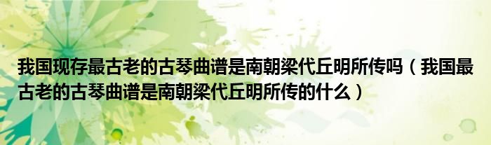 今天菲菲来为大家解答以上的问题。我国现存最古老的古琴曲谱是南朝梁代丘明所传吗,我国最古老的古琴曲谱是南朝梁代丘明所传的什么相信很多小伙伴还不知道,现在让我们一起来看看吧!