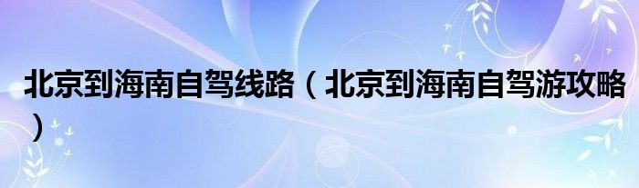 今天菲菲来为大家解答以上的问题。北京到海南自驾线路,北京到海南自驾游攻略相信很多小伙伴还不知道,现在让我们一起来看看吧!
