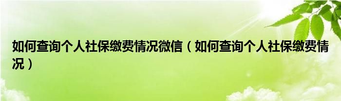 今天菲菲来为大家解答以上的问题。如何查询个人社保缴费情况微信,如何查询个人社保缴费情况相信很多小伙伴还不知道,现在让我们一起来看看吧!