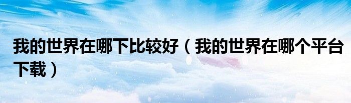 我的世界在哪下比较好(我的世界在哪个平台下载),求快速支援,时间不多了!