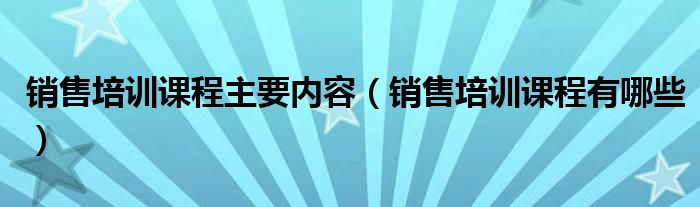 销售培训课程主要内容(销售培训课程有哪些),在线等,求秒回,真的火烧眉毛!