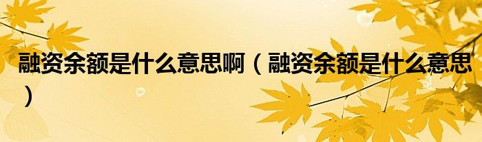 今天菲菲来为大家解答以上的问题。融资余额是什么意思啊,融资余额是什么意思相信很多小伙伴还不知道,现在让我们一起来看看吧!