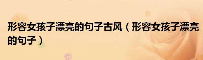 今天菲菲来为大家解答以上的问题。形容女孩子漂亮的句子古风,形容女孩子漂亮的句子相信很多小伙伴还不知道,现在让我们一起来看看吧!