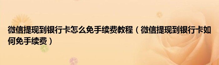 今天菲菲来为大家解答以上的问题。微信提现到银行卡怎么免手续费教程,微信提现到银行卡如何免手续费相信很多小伙伴还不知道,现在让我们一起来看看吧!